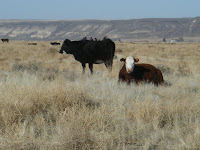 When we got home, we found that three of the neighbors cows were inside the gate. There are a couple hundred of his cows here eating the tumble weeds and anything else they can find. They had so far stayed out of the fenced area, but these three wandered in. We drove past them and attempted to move them out of the gate. One of them of course felt that she had to go over the fence, leaving a lot of hair behind from the barb wire. She managed to stretch the wire enough that I will have to tighten it later.